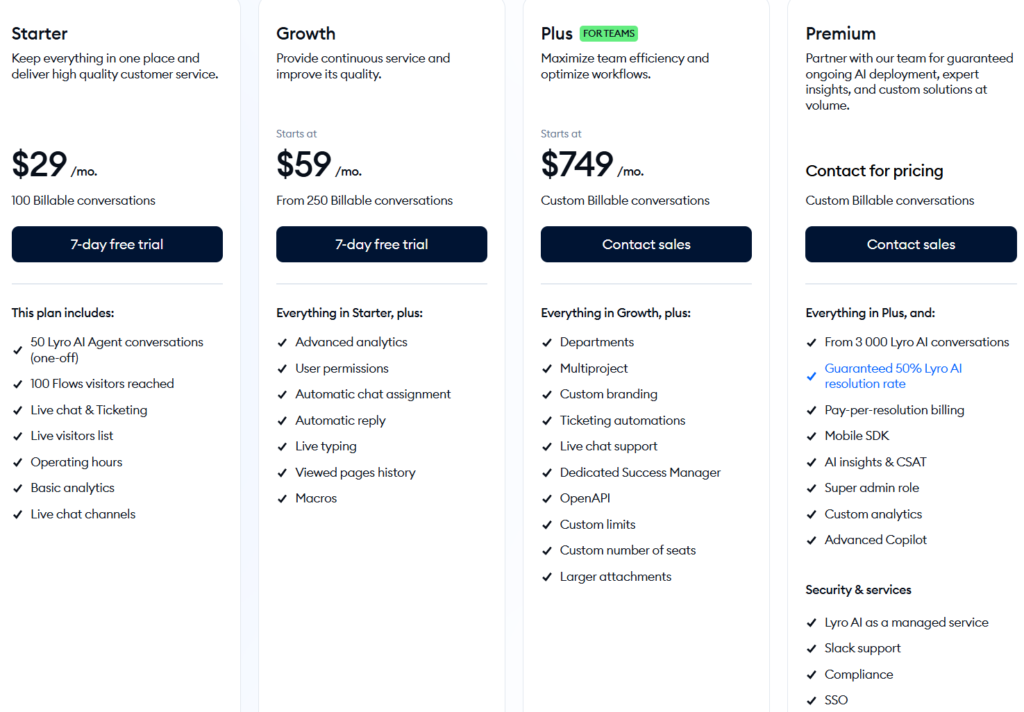 Tidio目前有免费版与付费版,tidio的免费版对于多数人来说完全够用,像桌面和移动端APP、客户来源等免费版也都是可以使用的,如果您需要付费版里的一些服务,也可以去订阅付费版。